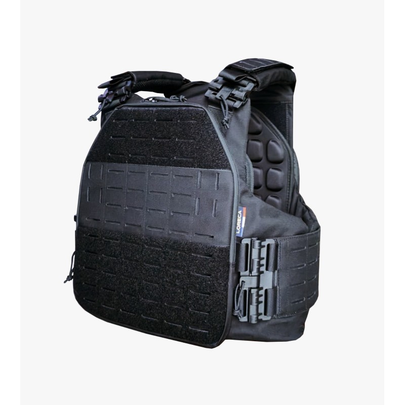 Conçu pour répondre aux exigences opérationnelles actuelles, il intègre une innovation unique : une poche déportée qui permet l'insertion ultra-rapide d'une plaque balistique lourde sans retirer le gilet, sans modifier ses réglages et sans altérer le confort.