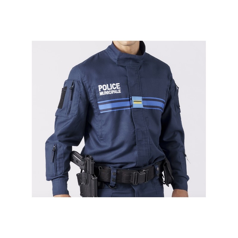 Triple bande gitane stretch, supports auto-agrippants pour écussons et broderies "POLICE MUNICIPALE" devant et dos conformément à l'arrêté du 5 mai 2014.