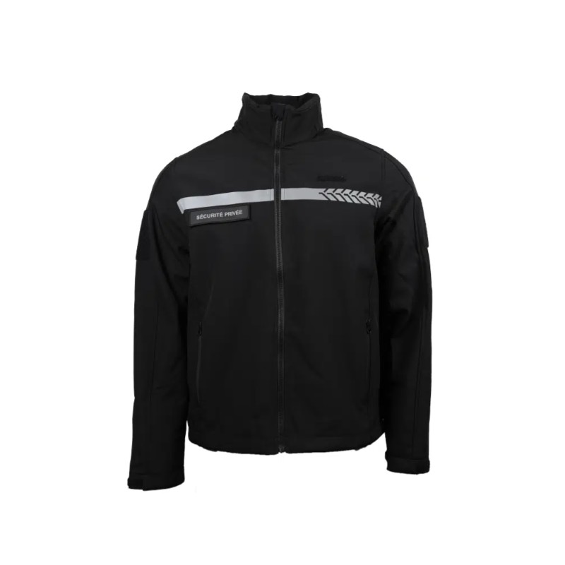 Softshell SECURITÉ PRIVÉE,Identifiants escamotables, conforme nouveau decret, emplacement RIO et marquage dos rétro.