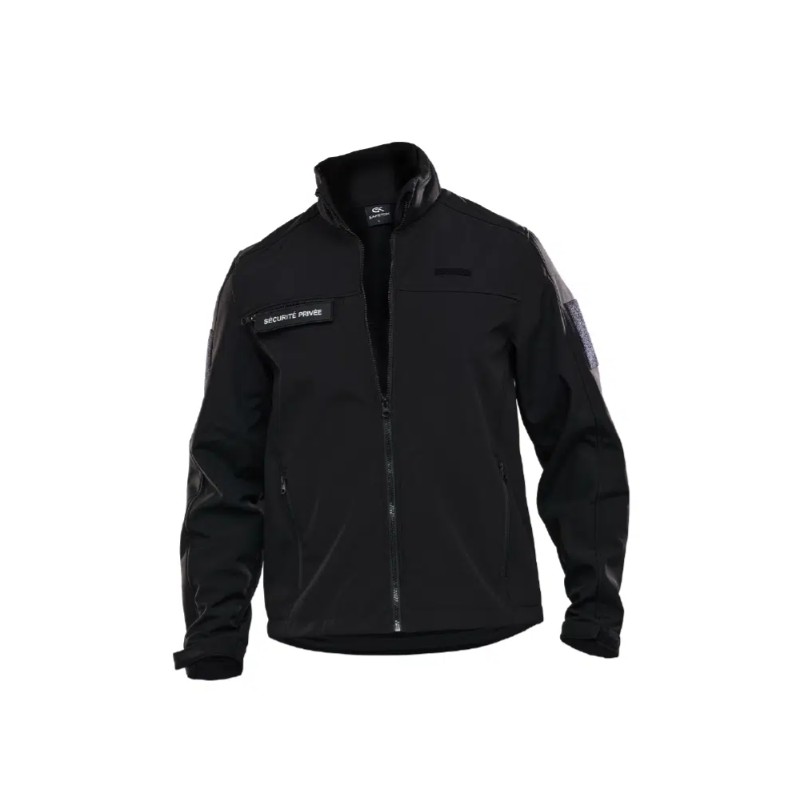Softshell SECURITÉ PRIVÉEavec bande Haute Visibilité conforme nouveau decret, emplacement RIO et marquage dos rétro.