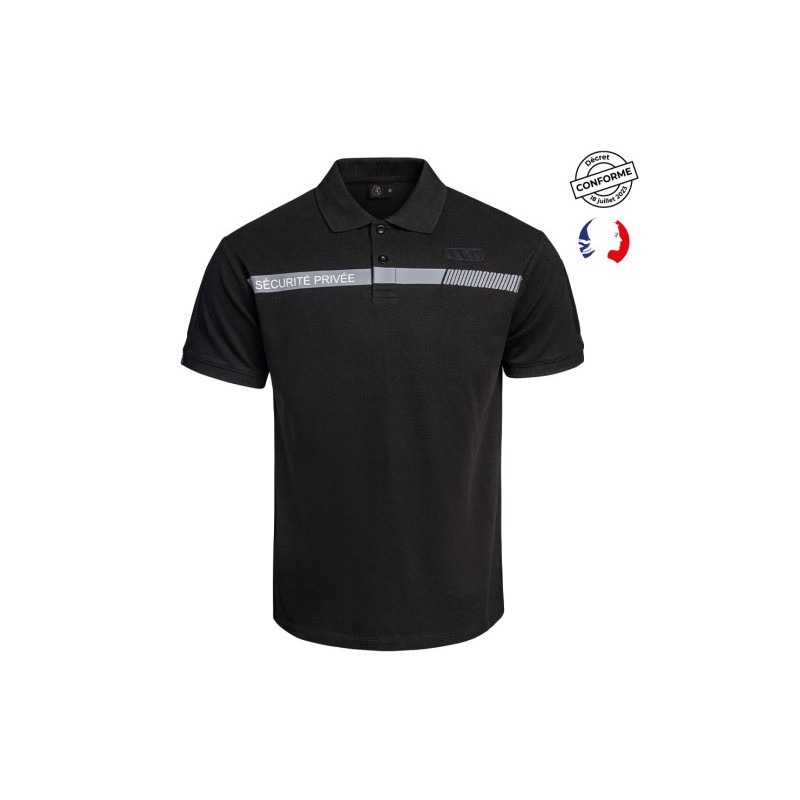 Nouveau Polo Sécurité privée conforme nouveau decret, emplacement RIO et marquage dos rétro.