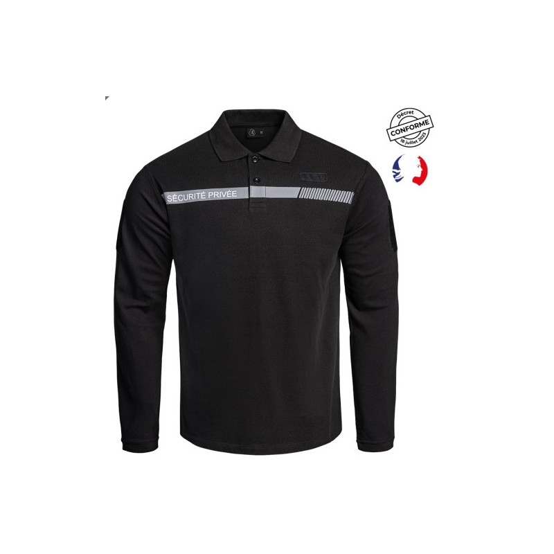 Nouveau Polo Sécurité privéemanches longues conforme nouveau decret, emplacement RIO et marquage dos rétro.