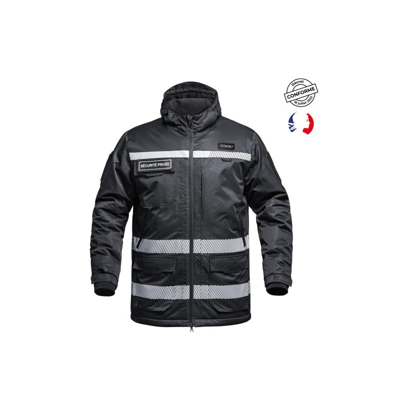 Parka SECURITÉ PRIVÉE,Identifiants escamotables, conforme nouveau decret, emplacement RIO et marquage dos rétro.