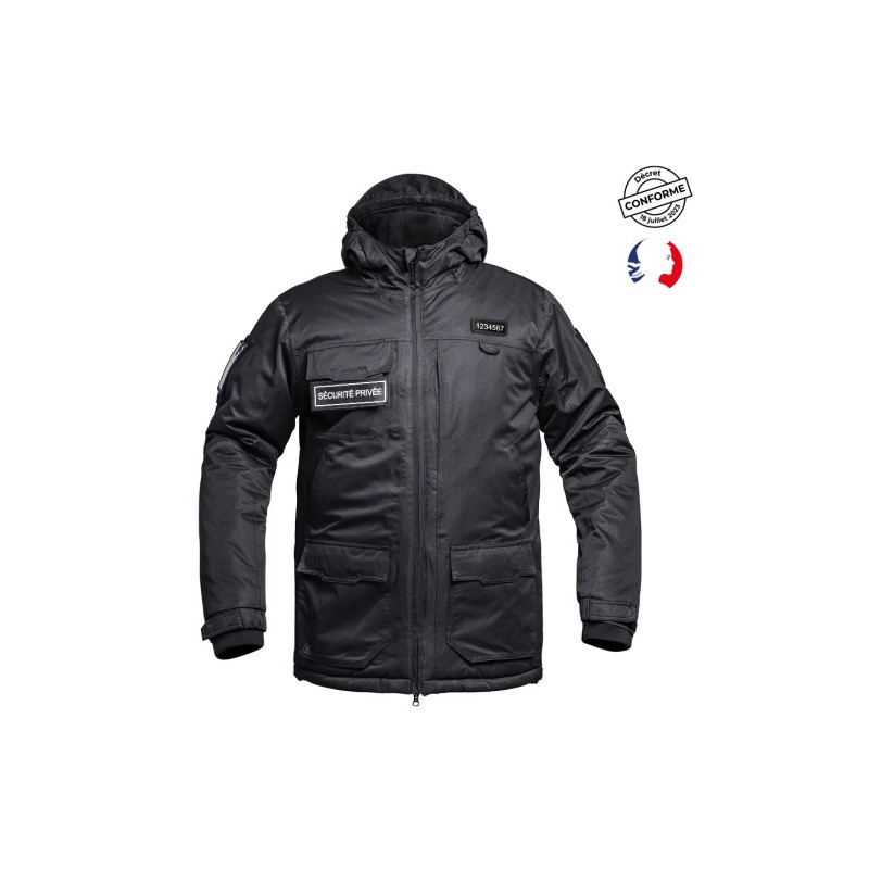Parka SECURITÉ PRIVÉE,Identifiants escamotables, conforme nouveau decret, emplacement RIO et marquage dos rétro.